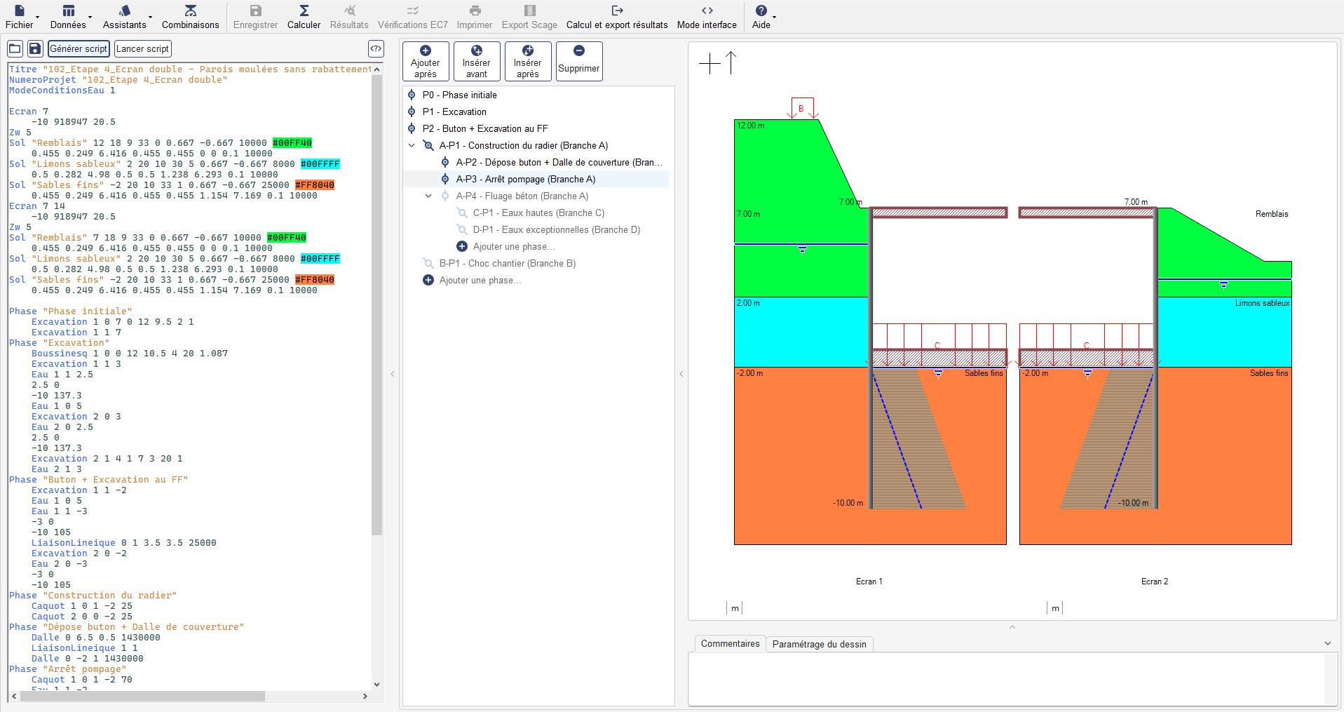 • Une interface conviviale permettant de visualiser le phasage et les actions avec un accès graphique et numérique aux résultats clés  nécessaires au dimensionnement