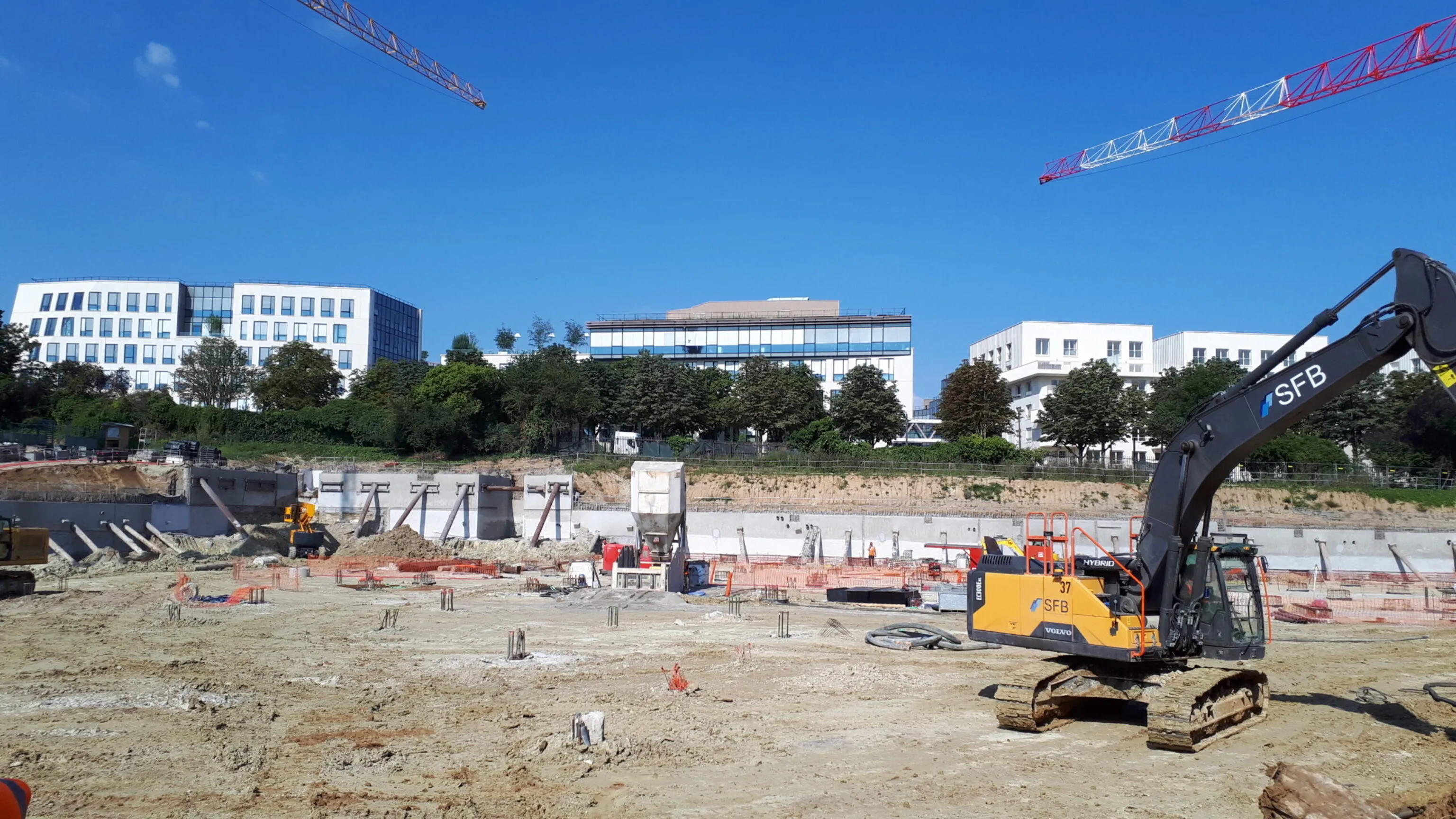 La fondation en pieux est déjà réalisée et les parois de soutènement du parking sont en cours de finalisation.
