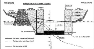 La stabilité du fond de fouille en configuration cale dénoyée est assurée par un radier drainant. Une des difficultés du projet fut d’apprécier la stabilité et l’étanchéité des digues existantes àl’aval et à l’amont du site.
